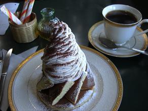 こんなマロンクリーム山盛り(文字通り)初めて見ましたよホットケーキなのに、